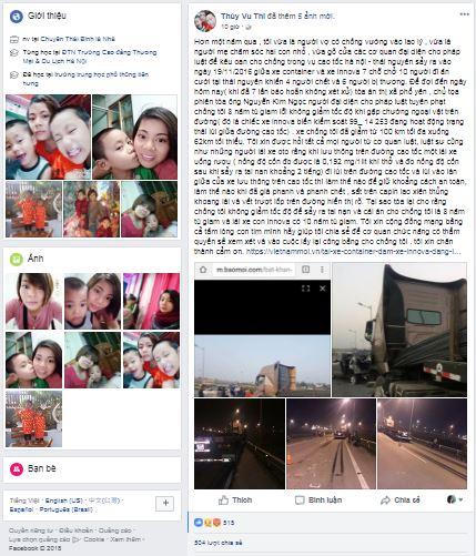 “Hơn một năm qua, tôi vừa phải quán xuyến mọi việc gia đình, chăm sóc 2 con nhỏ, vừa gõ cửa các cơ quan pháp luật để kêu oan cho chồng là bị cáo Lê Ngọc Hoàng (tên khác Vũ Văn Hoàng) bị các cơ quan tố tụng TX Phổ Yên (tỉnh Thái Nguyên) khởi tố, bắt giam và kết án 8 năm tù về tội “Vi phạm các quy định về điều khiển phương tiện giao thông đường bộ” trong vụ va chạm giao thông xảy ra tại cao tốc Hà Nội - Thái Nguyên ngày 19/11/2016 khiến 4 người tử vong.”- chị Vũ Thị Thúy (29 tuổi, quê Thái Bình) mở chia sẻ trên trang facebook cá nhân…