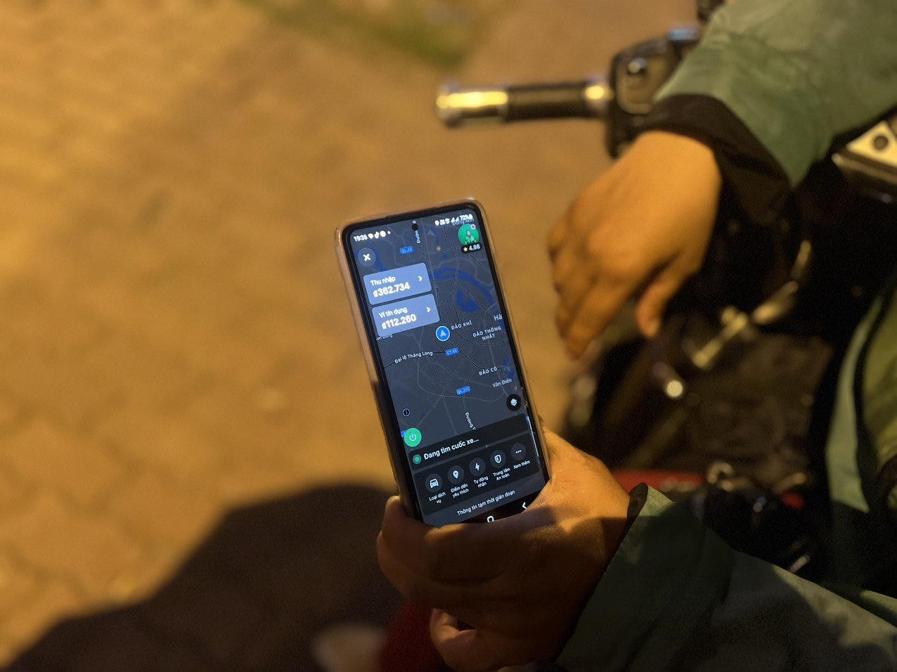Dù đã 8h tối nhưng chị Phúc mới chỉ chạy được hơn 300.000 đồng cho 13 chuyến xe. |