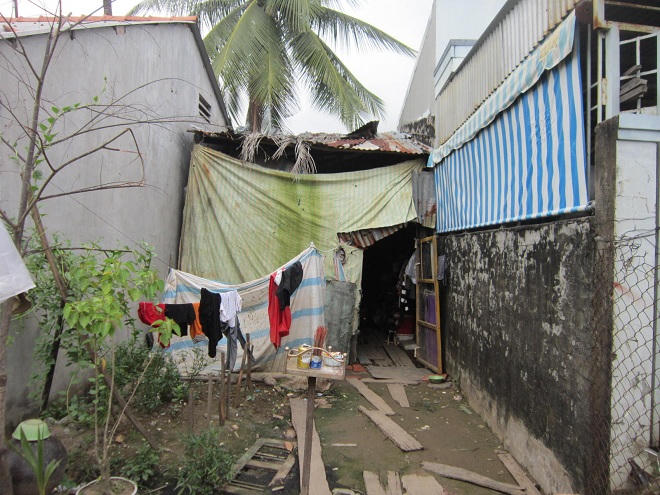 Căn nhà của người đàn ông được người dân nơi đây ví von là “kình ngư” nằm trong con hẻm ngoằn ngoèo. Nói là nhà cho sang nhưng chẳng khác nào một căn lều cũ kĩ đã rách nát, chắp vá đủ đường. Bà Phan Thị Ánh Tuyết (47 tuổi, vợ ông Khải) một tay ẵm đứa cháu gái, một tay ghi chép những con số chi tiêu trong gia đình.
