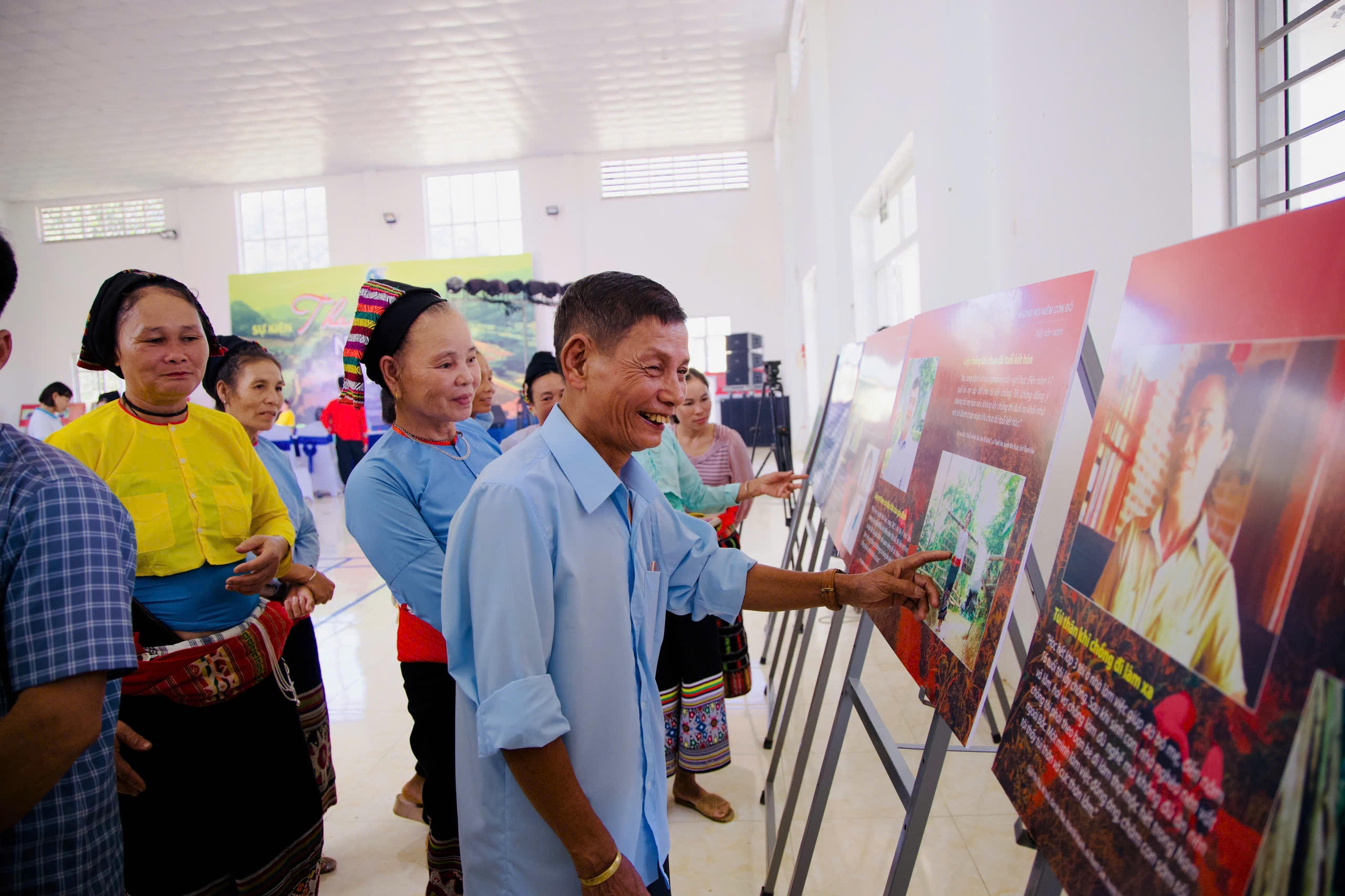 Người dân xã Thanh Sơn xem Triển lãm “Thanh Sơn ngày mới” để thấy những đổi thay trên chính quê hương mình trong nhận thức về bình đẳng giới, bạo lực gia đình. Nguồn BTPNVN |