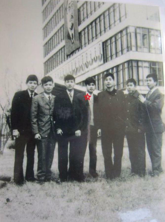 Tấm ảnh lưu niệm chụp các du học sinh Việt Nam tại Đại học Kiev, tác giả Nguyễn Văn Ất là người đứng giữa (đánh dấu ngôi sao). |