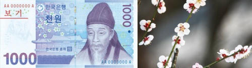 Tờ tiền phổ biến nhất tại Hàn Quốc có mệnh giá 1.000 won với màu xanh nhạt bắt mắt. Mặt trên của tờ tiền có những bông hoa, ngôi nhà hanok và chân dung một người đàn ông: học giả Toegye Yi Hwang dưới triều Joseon.