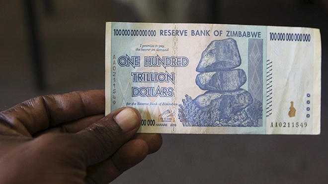 Cứ mỗi 25 giờ, giá cả ở nước này lại tăng gấp đôi. Cùng năm, Zimbabwe đã in tờ tiền giấy có mệnh giá lớn nhất là 100 nghìn tỉ đô la nhưng cũng chỉ đủ để mua vé xe bus cho 1 tuần.