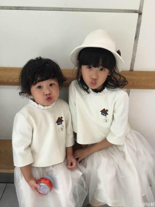 | Hai thiên thần xinh xắn của tài tử họ Lục. |