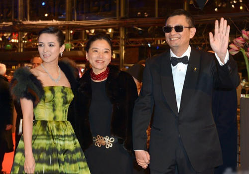 Vương Gia Vệ luôn cùng vợ dự các sự kiện điện ảnh quốc tế. Trong ảnh, vợ chồng ông cùng Chương Tử Di (trái) tại LHP Berlin năm 2013. Ảnh:Sina. |