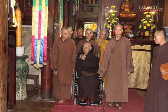 | Thiền sư lễ Phật, lễ Tổ và đi thăm lại từng nơi chốn quen thuộc nơi tổ đình Từ Hiếu. Ảnh Báo Giác ngộ |
