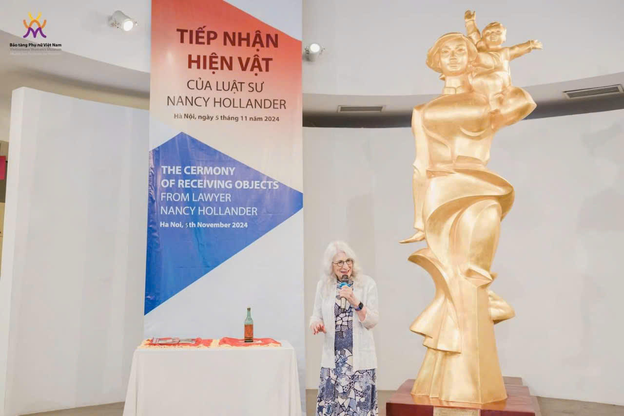 Ngày 5/11/2024, tại buổi lễ tiếp nhận hiện vật đặc biệt - vỏ chai rượu, chia sẻ về hiện vật, Luật sư Nancy Hollander kể: “Vào năm 1965, trong cuộc gặp gỡ tại Jakarta giữa Đoàn Phụ nữ Việt Nam và Hoa Kỳ, tôi đã được Đoàn Phụ nữ Việt Nam tặng một chai rượu vang, tượng trưng cho tình hữu nghị và niềm hy vọng cho tương lai hòa bình giữa hai nước. Khi ấy, tôi đã tự hứa với mình sẽ mở chai rượu ra uống khi chiến tranh kết thúc. Đến ngày 30/4/1975, khi hay tin Việt Nam giải phóng miền Nam, thống nhất đất nước, tôi đã mở chai rượu và uống cùng 10 người bạn, đánh dấu khoảnh khắc lịch sử mà hòa bình đã đến với Việt Nam.