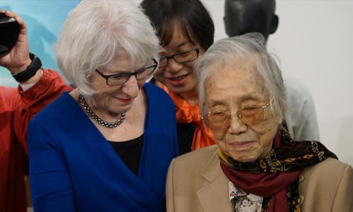 Bà Nancy Hollander và bà Nguyễn Thị Bình hội ngộ tại Hà Nội. (Ảnh: Bảo Hân). |