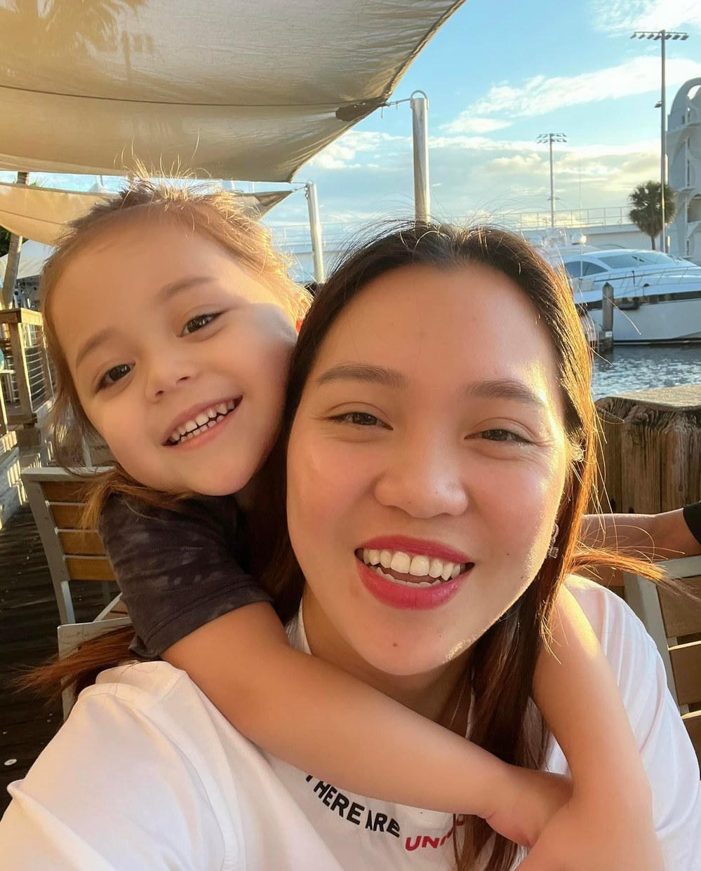 Tình cờ một lần khi cô đang đi trên xe buýt từ trường về nhà thì ông xã nhắn tin làm quen. “Anh nhắn rất dài nói là mình rất dễ thương, anh muốn nói chuyện và biết thêm về mình. Sau 2 tuần trò chuyện, anh lái xe từ Michigan qua Chicago cách 5 tiếng đồng hồ lái xe để gặp”.