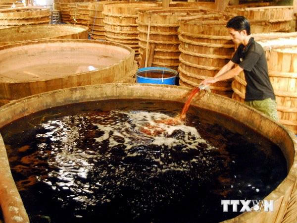 Nước mắm Phú Quốc đạt chuẩn sẽ có màu cánh dán, không ngọt vị đường mà ngọt từ chất đạm cá, mùi vị thơm nhẹ không quá nồng đậm (Ảnh: TTXVN). |