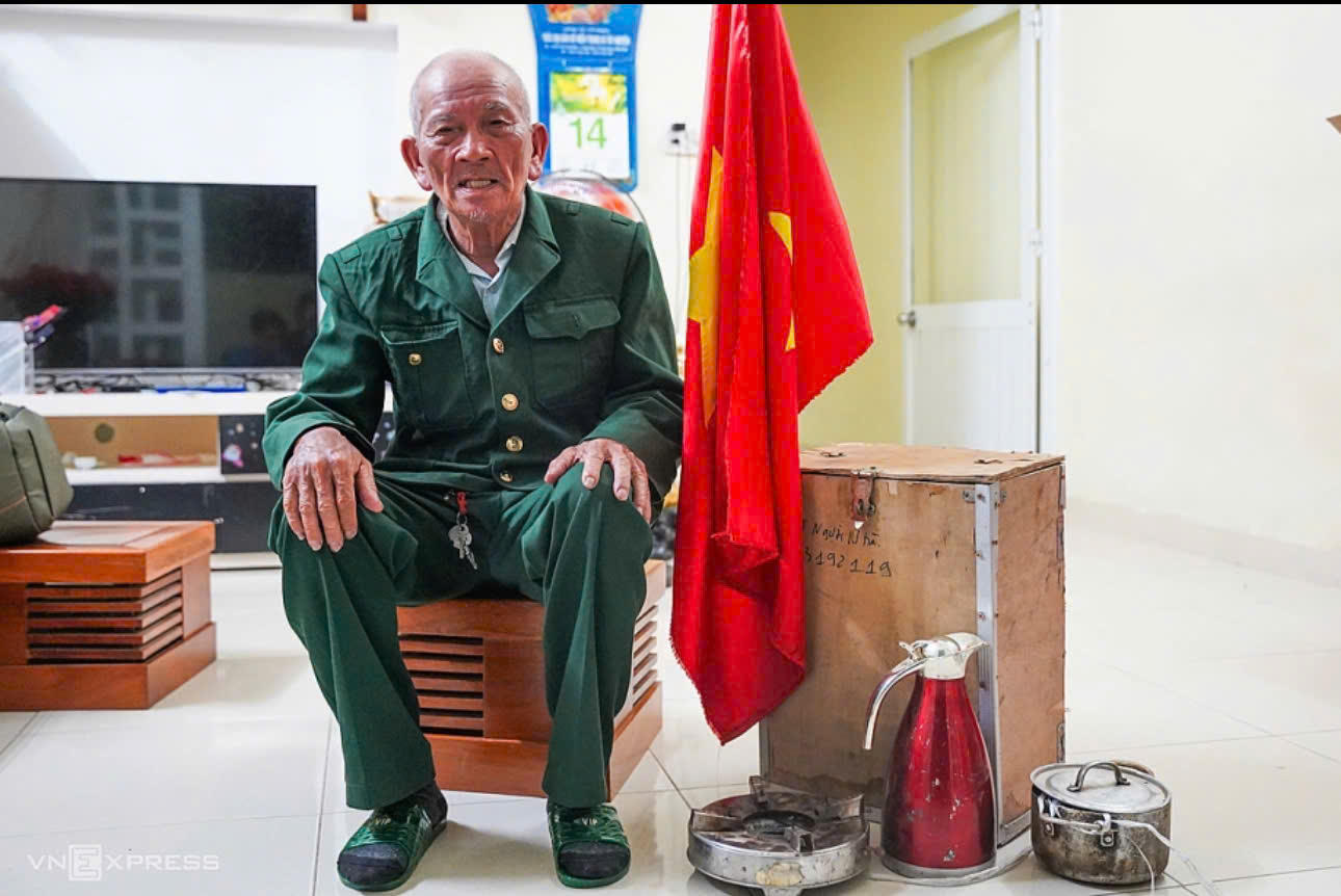 Giữa dòng người tấp nập ấy, nổi bật hình ảnh cựu chiến binh Trần Văn Thanh (76 tuổi, quê Nghệ An) một mình lái chiếc xe máy vượt hơn 1.300 km để vào đến TP.HCM. Ông khoác bộ quân phục cũ màu xanh, trên ngực lấp lánh những huy hiệu năm xưa — bộ quân phục không chỉ là quần áo, mà là cả một ký ức thiêng liêng ông gìn giữ suốt chặng đường đời.