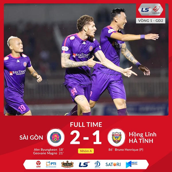 CLB Sài Gòn không tạo áp lực quá lớn lên hàng phòng ngự HL Hà Tĩnh nhưng họ vẫn có hai bàn thắng trong nửa đầu hiệp 1. Bàn đầu tiên, trung vệ Ahn Byung Keon ghi bàn từ tình huống đá bồi, “sửa sai” cho người đồng đội Quốc Long không thắng được thủ môn HL Hà Tĩnh trên chấm 11m.