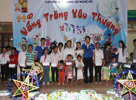Tối ngày 26/9 (tức 14/8 Âm lịch), CLB Liên quân Báo chí Nghệ An (Rclub Nghệ An – đội bóng những phóng viên, nhà báo thường trú tại Nghệ An), phối hợp với các đơn vị tài trợ, các nhà hảo tâm tổ chức đêm hội “Vầng trăng yêu thương” cho trẻ em đồng bào dân tộc Thái và Đan Lai tại xã miền núi Thạch Ngàn (Con Cuông, Nghệ An).
