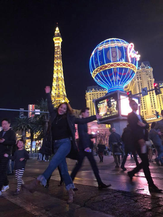 Khánh Thi để lộ vòng hai lùm lùm khi chia sẻ hình ảnh đi du lịch ở Mỹ. |