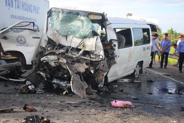 Khi đến địa phận xã Điện Minh, TX.Điện Bàn (Quảng Nam), xe khách bất ngờ va chạm với xe container mang BS 51D - 411.21, kéo theo rơ moóc 51R - 215.75, do tài xế Nguyễn Hữu Thành (quê Long An), điều khiển theo hướng ngược lại, khiến 10 người tử vong tại chỗ, 3 người tử vong trên đường đến bệnh viện, trong đó có chú rể.