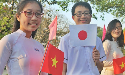 (PLO) - Rất nhiều người dân và học sinh trang phục truyền thống, tay cầm cờ hai nước đợi sẵn bên đường Lê Lợi cả tiếng đồng hồ để được chào đón Nhật hoàng và Hoàng hậu đến thăm Cố đô Huế, chiều qua, 3/3.