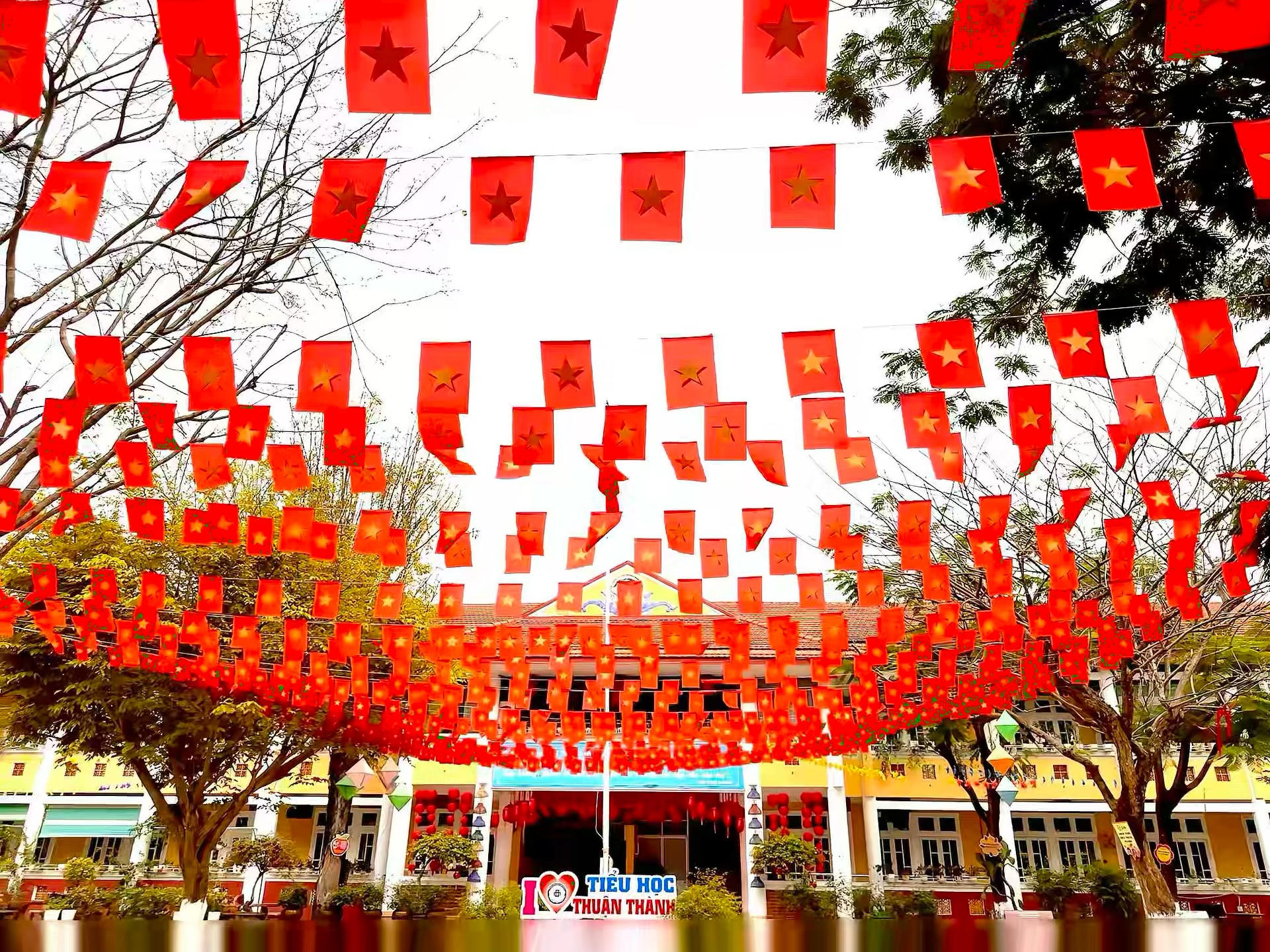 Mỗi lá cờ như một ngọn lửa nhỏ, cùng thắp sáng không gian. Hình ảnh ấy không chỉ tạo nên bầu không khí trang nghiêm, rực rỡ mà còn mang ý nghĩa giáo dục sâu sắc. |