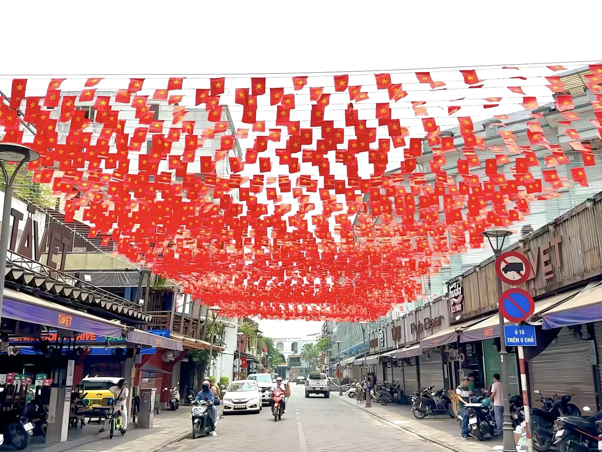 Các ngõ hẻm cũng được trang hoàng cờ hoa rực rỡ chào mừng ngày lễ lớn. |