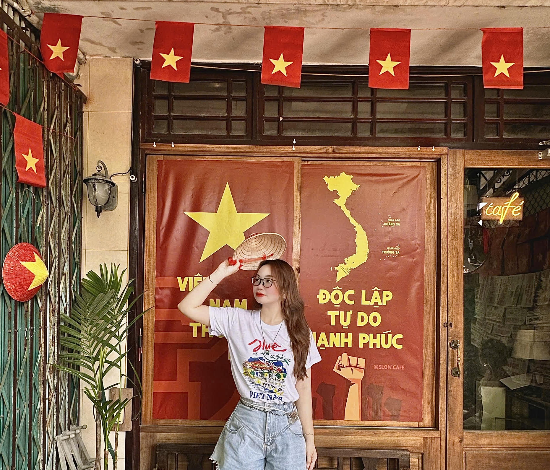Những quán cà phê và đường phố rực rỡ cờ hoa dịp 30/4 thu hút giới trẻ thể hiện lòng yêu nước.