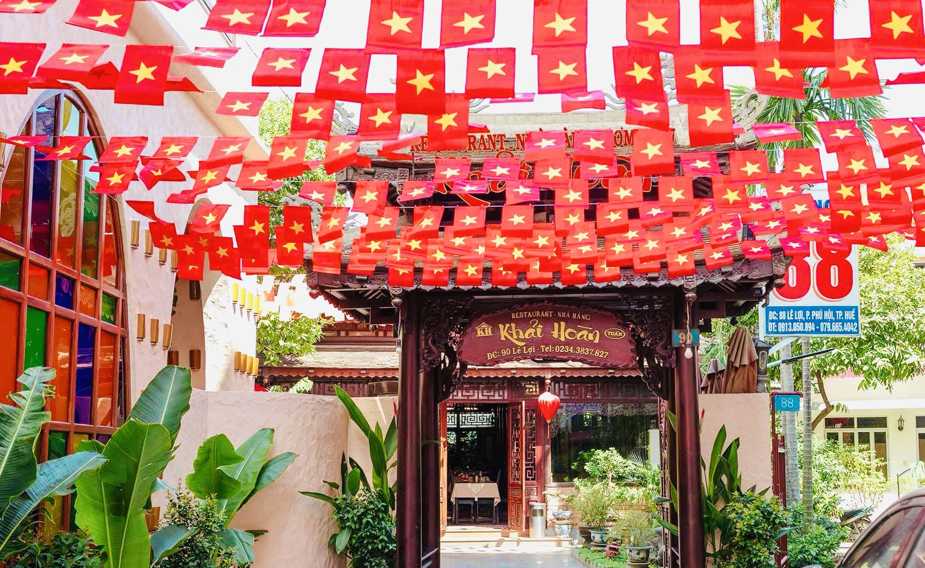 Nhà hàng Khải Hoàn (đường Lê Lợi, TP Huế) treo cờ hưởng ứng ngày Quốc khánh 2/9 đã nhiều ngày qua. |