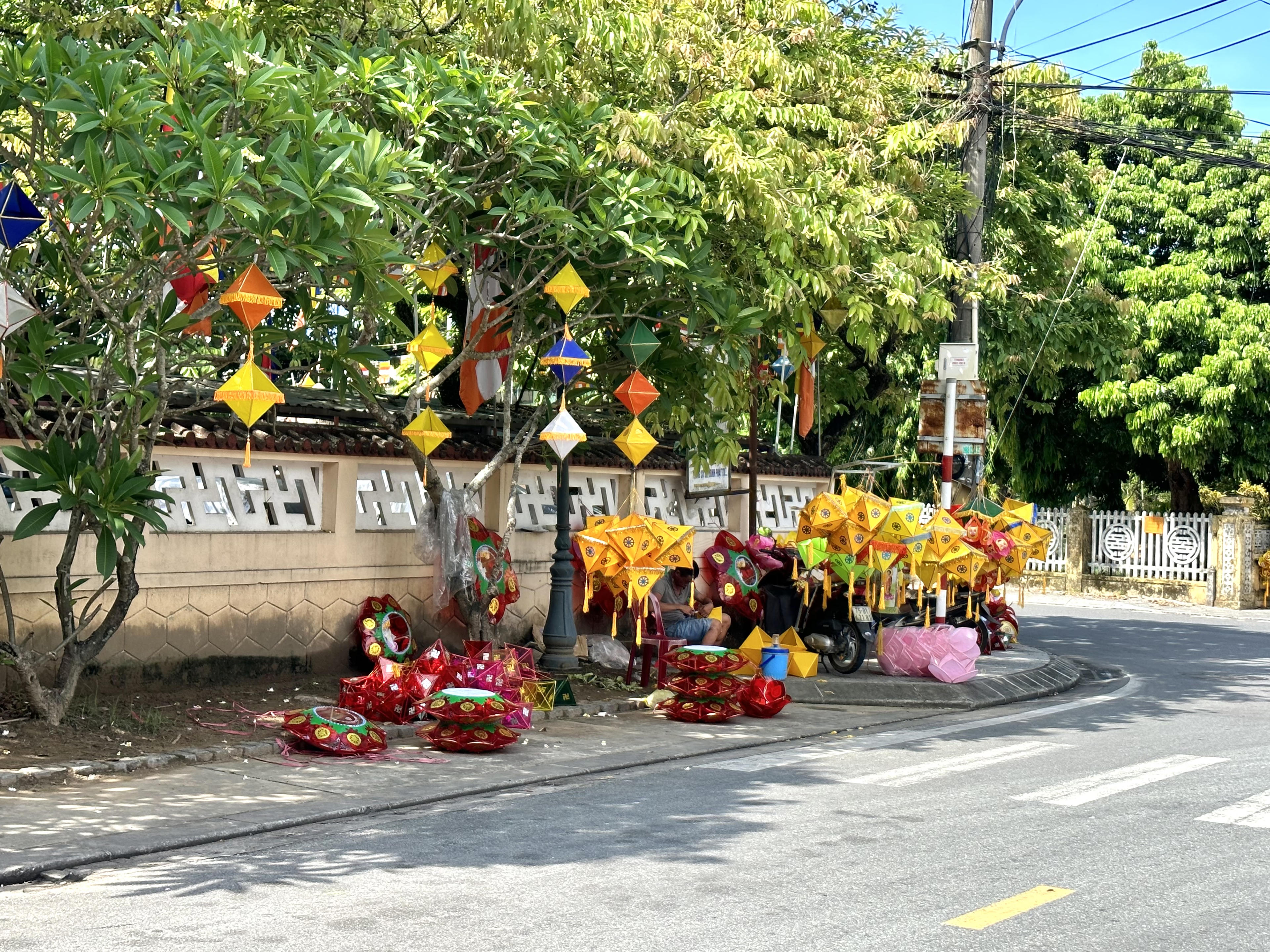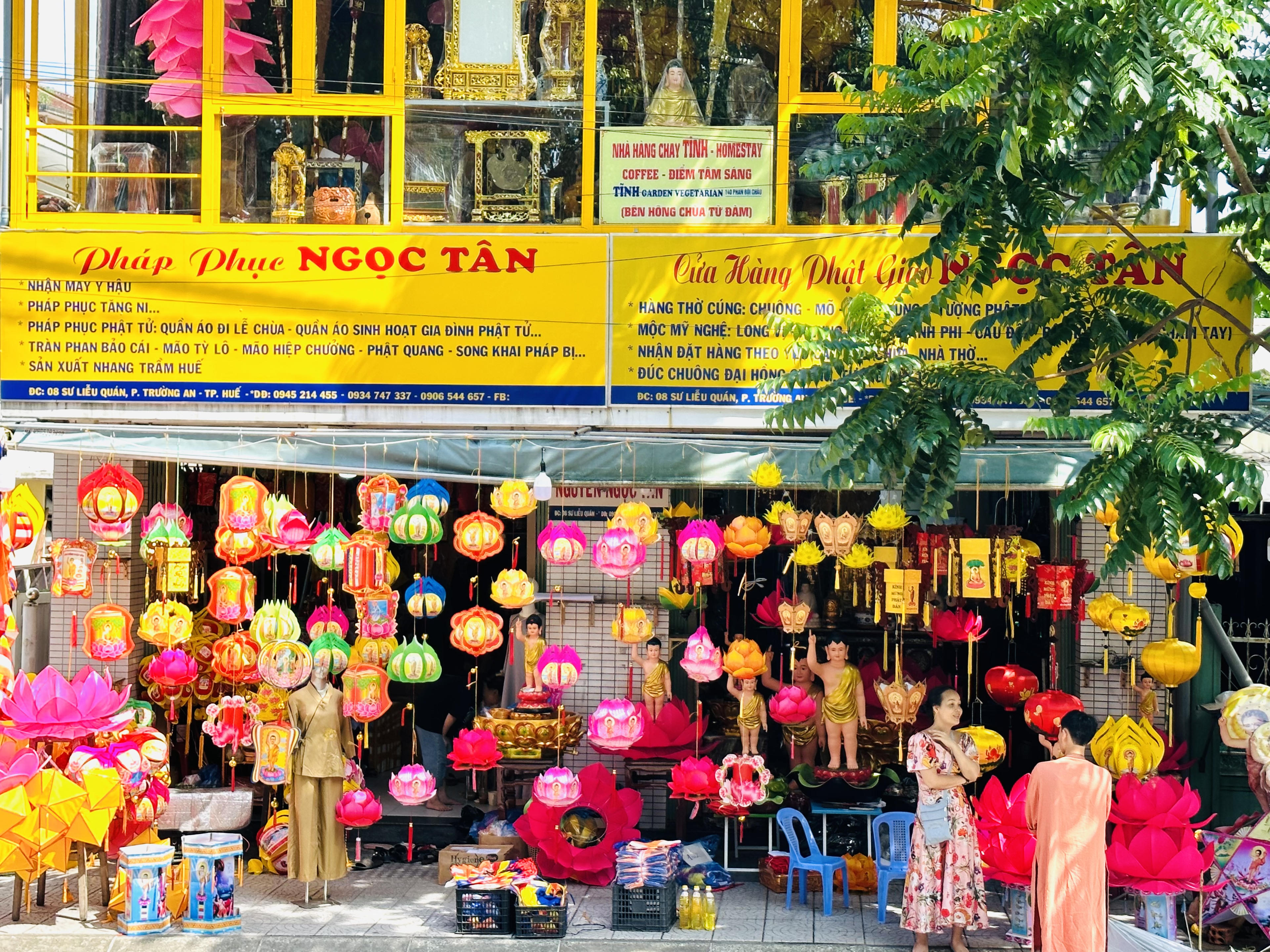 Lồng đèn đón lễ Phật đản được bày bán trên đường phố Huế. |