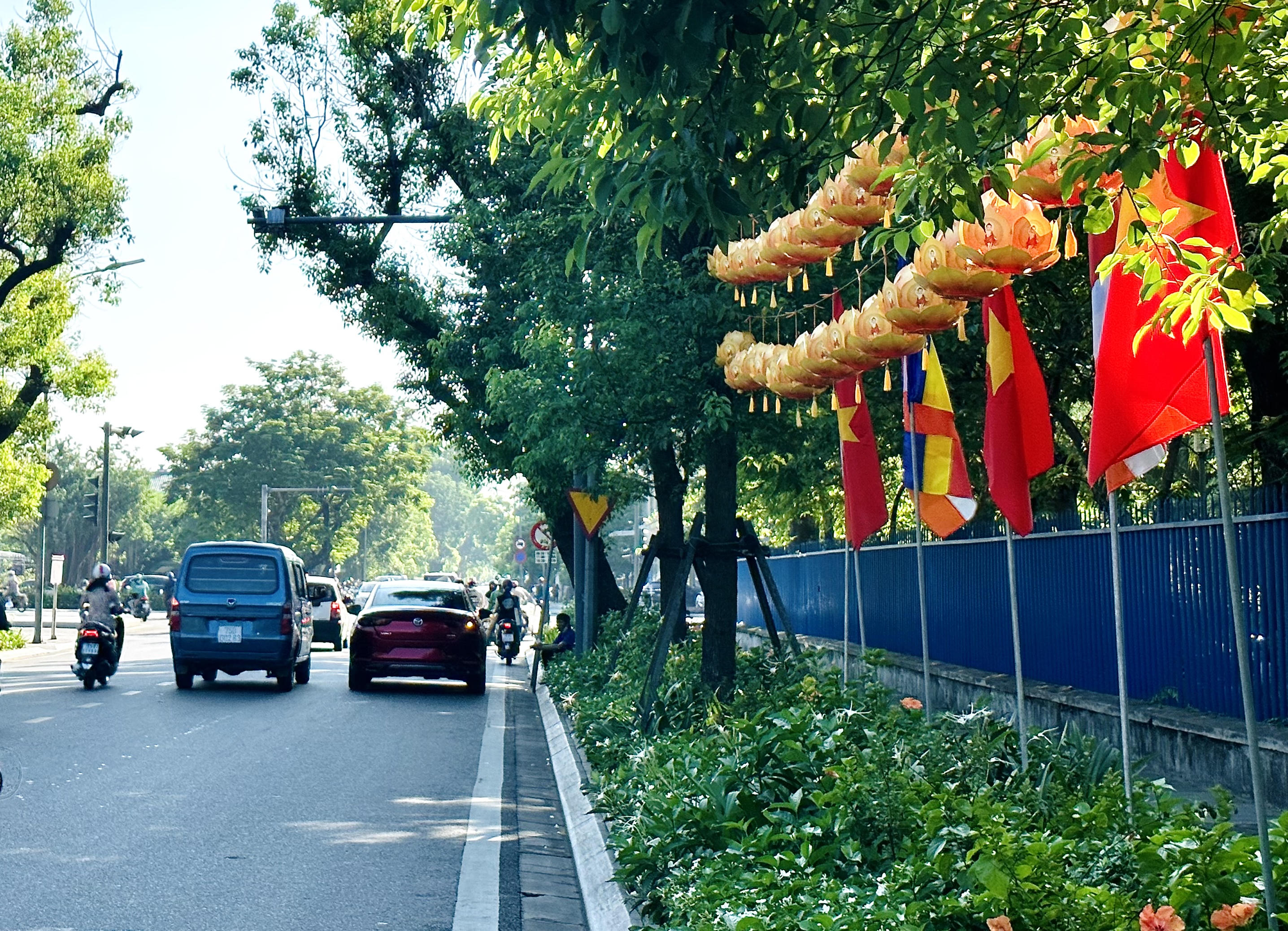 Tuyến đường Lê Lợi rực rỡ sắc màu chào đón mùa Phật đản. |
