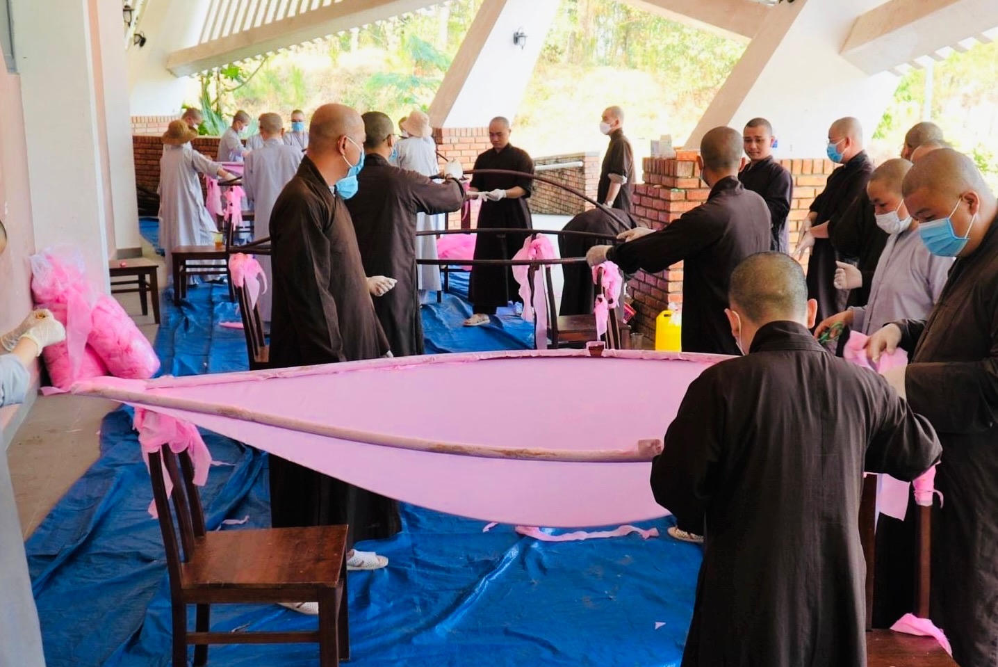 Tăng Ni sinh Học viện Phật giáo Việt Nam tại Huế làm hoa sen đón mừng Phật đản Phật lịch 2567. |