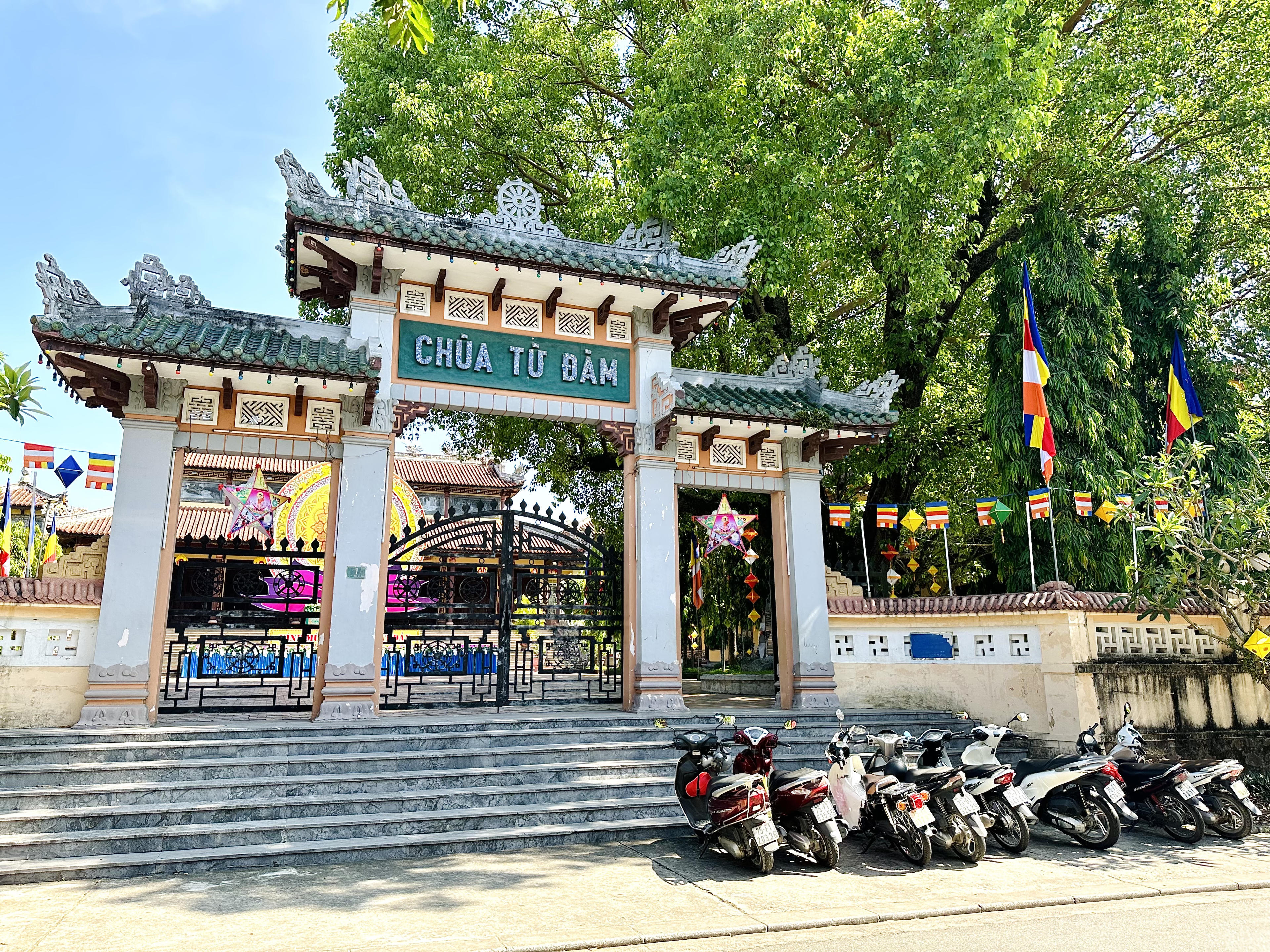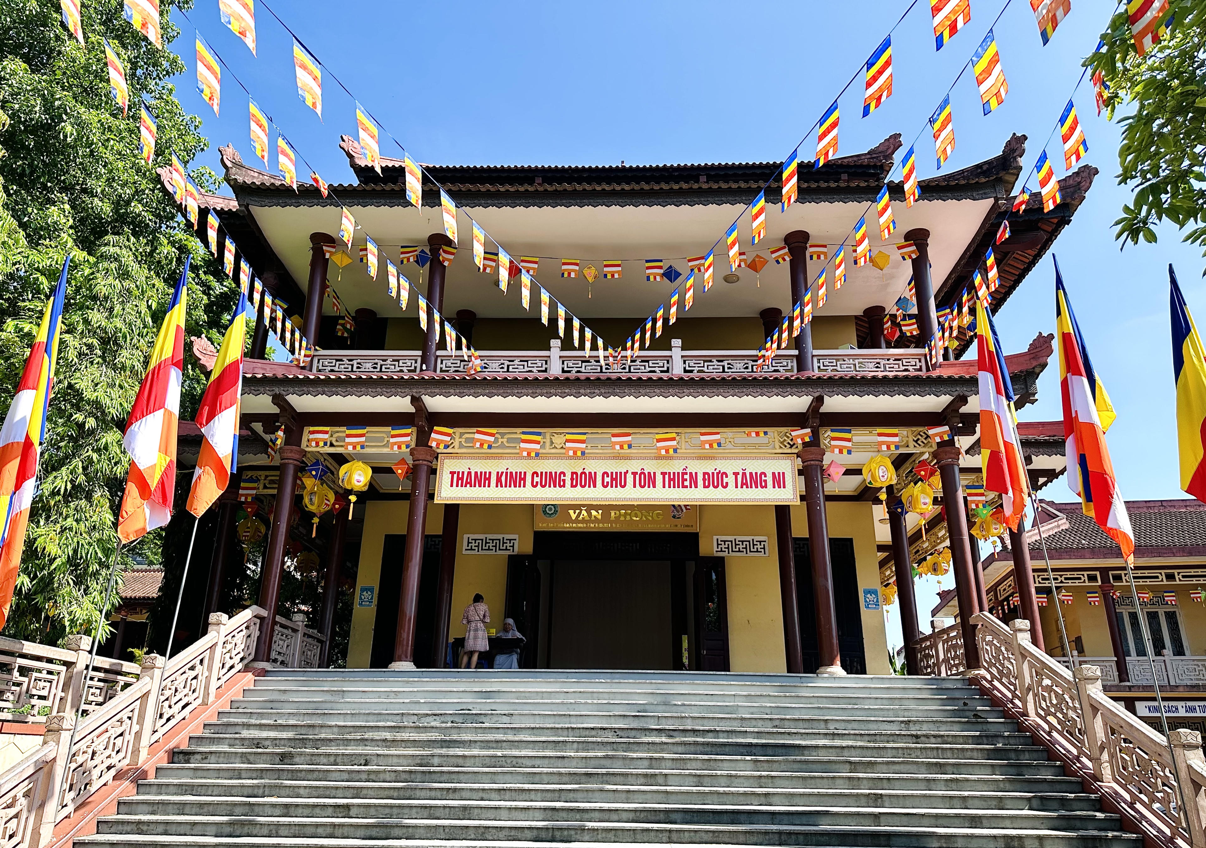 Cờ Phật giáo được trang hoàng rực rỡ tại Chùa Từ Đàm. |