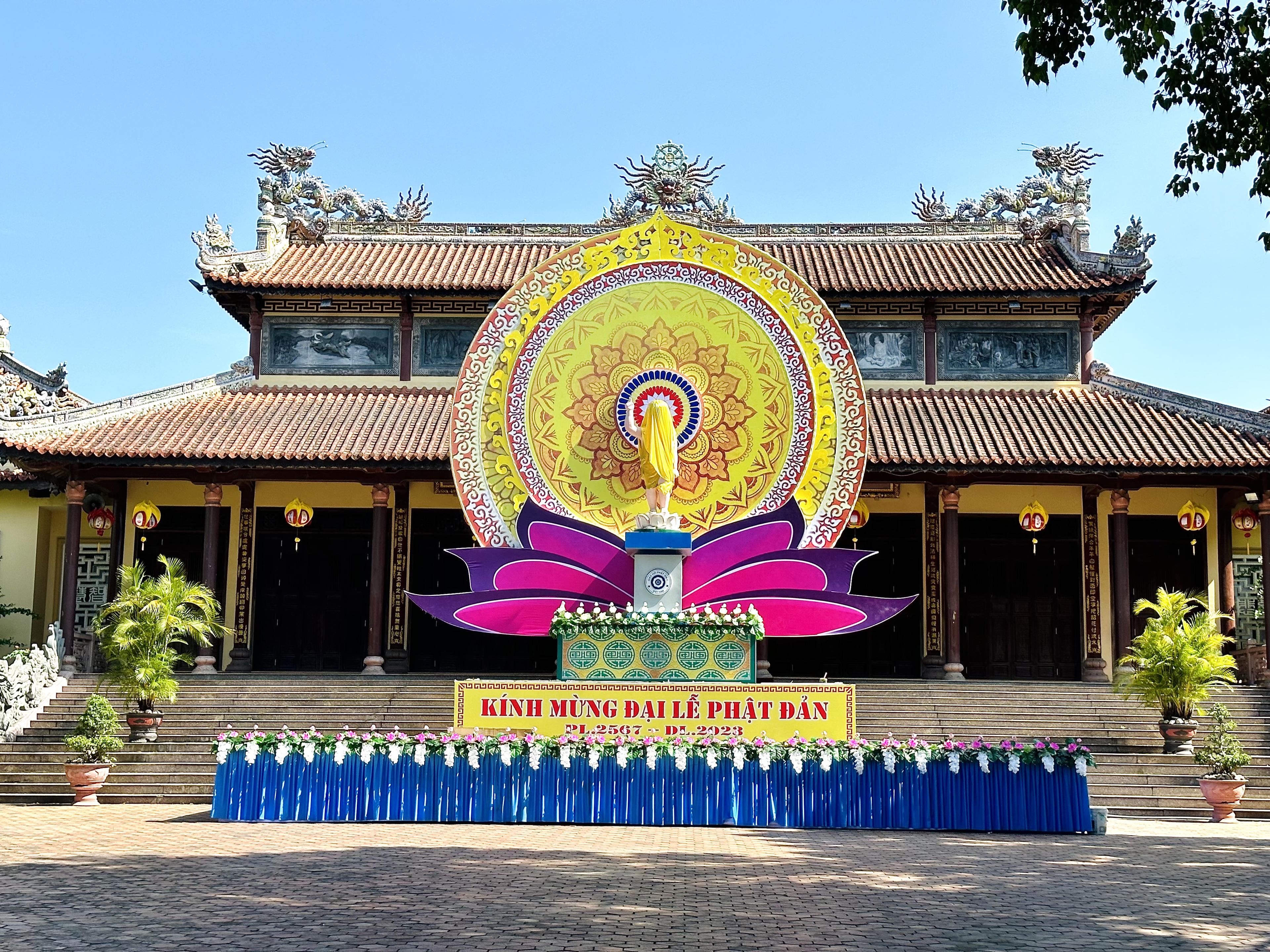 Quốc tự Diệu Đế rực rỡ cờ hoa, đèn lồng trong Đại lễ Phật đản, Phật lịch 2567. |