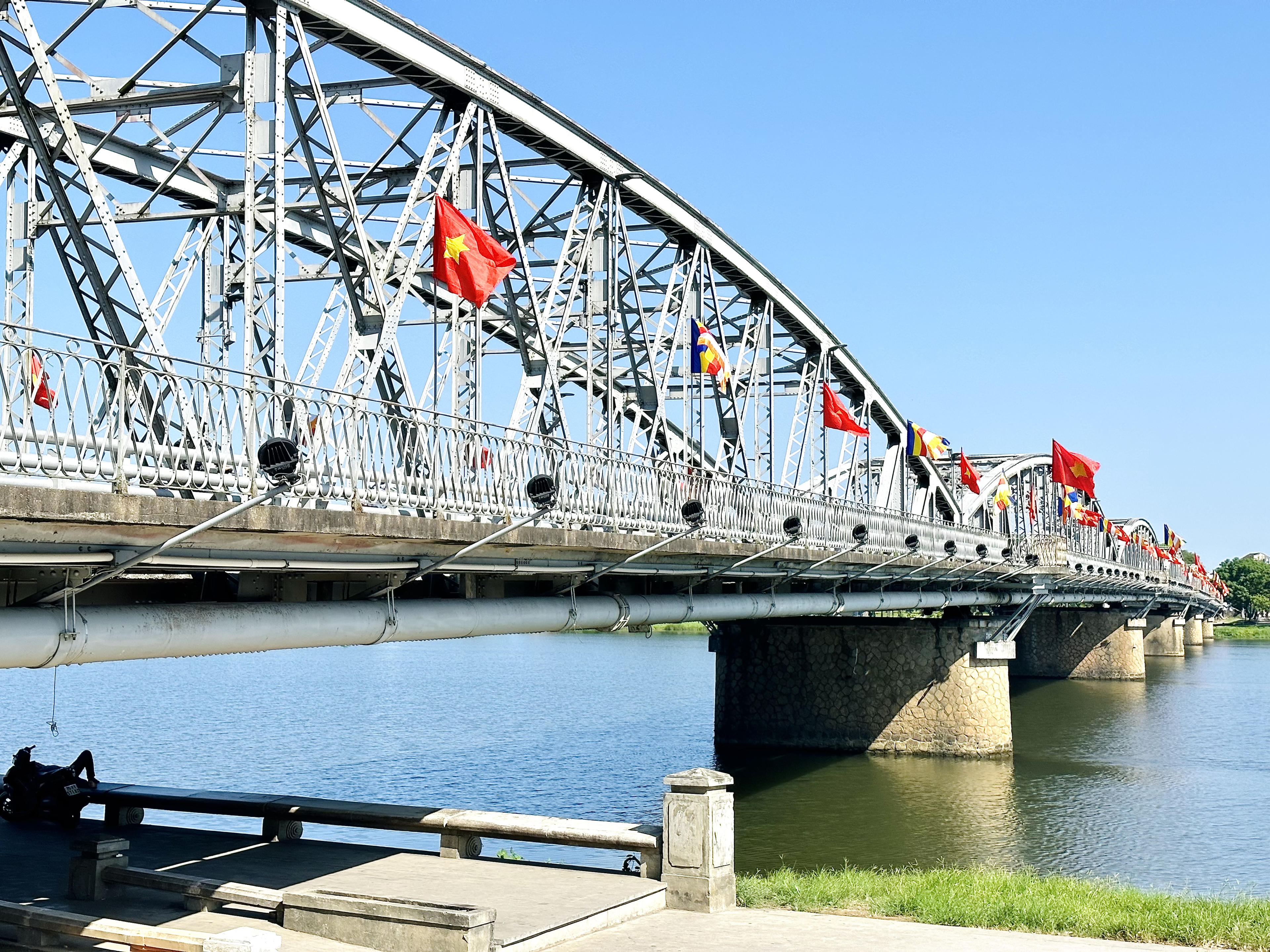Cầu Trường Tiền bắc qua sông Hương, TP Huế trong Tuần lễ Phật đản. |