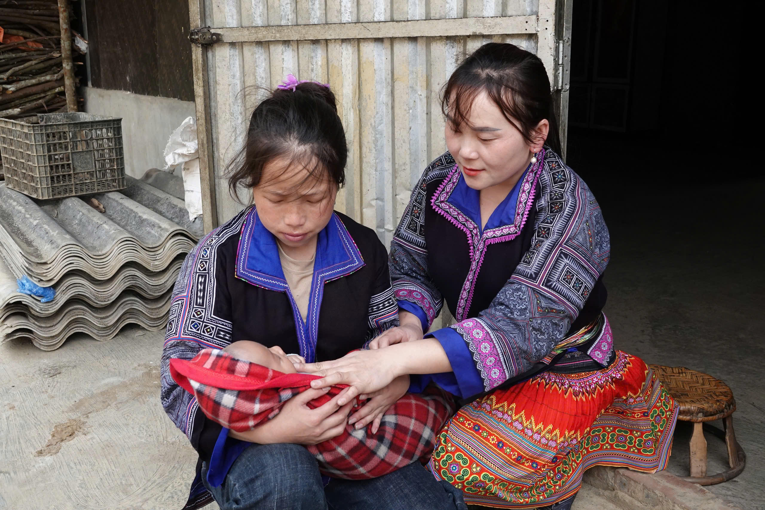 Cô đỡ thôn bản là cầu nối y tế vùng núi, giúp phụ nữ vùng cao chăm sóc trẻ sơ sinh. Ảnh: Nguyên Đức. |