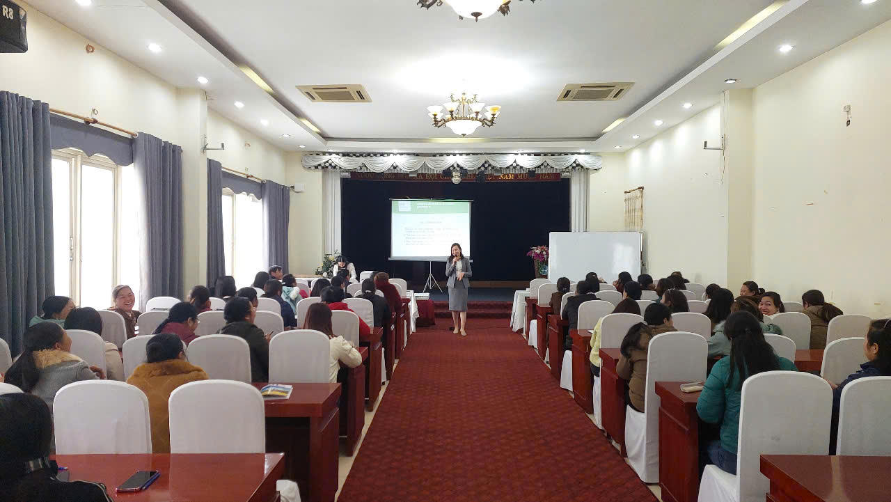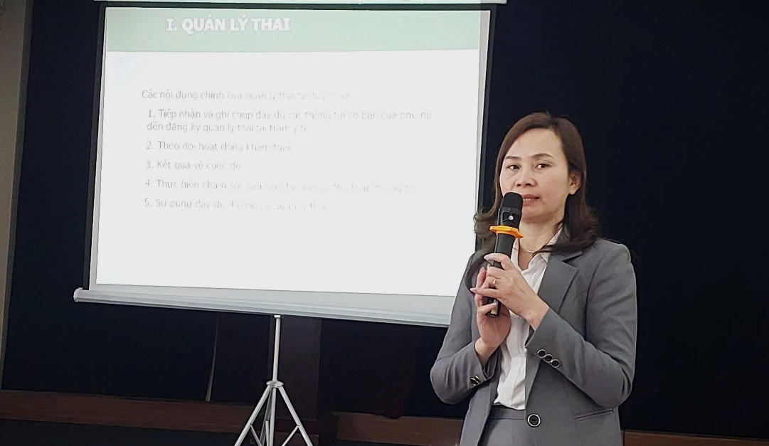 Bác sĩ Nguyễn Thị Kim Anh đứng lớp truyền dạy kiến thức chăm sóc sức khỏa bà mẹ và trẻ em tại Yên Bái. Ảnh: Nguyên Đức. |