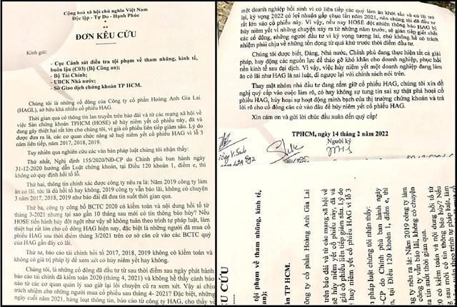 Cuối đơn, nhóm nhà đầu tư đang nắm giữ cổ phiếu HAG đề nghị cơ quan chức năng vào cuộc làm rõ, có hay không việc tung tin sai sự thật phá hoại cổ phiếu HAG, hủy hoại sự hoạt động minh bạch của thị trường chứng khoán và trả lời rõ cho cổ đông nếu hủy niêm yết cổ phiếu HAG thì căn cứ vào đâu, quy định, điều luật nào để hủy?