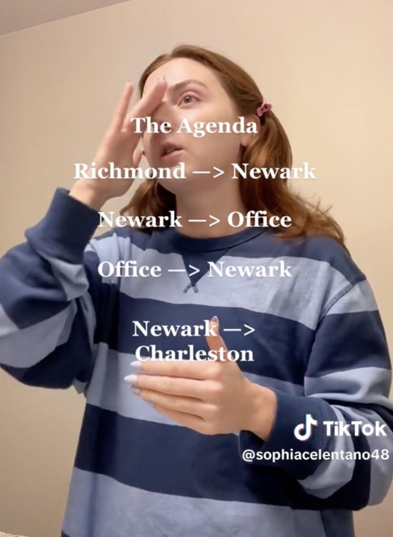Cô gái 21 tuổi có tên Sophia Celentano (ở Charleston, bang South Carolina, Mỹ) là thực tập sinh marketing tại một công ty ở thành phố Newark (bang New Jersey, Mỹ). Cô làm việc theo mô hình hybrid-working (làm việc kết hợp từ xa và văn phòng) nên cô chỉ cần đến công ty một lần trong tuần.
