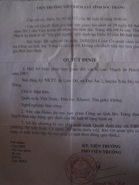 Đến 25/2, hai bị can còn lại là Trần Hol và Thạch Sô Phách cũng đã được trở về với gia đình. 7 tháng bị tam giam chưa phải là thời gian dài nhưng đối với một đời người, đây là khoảng thời gian ám ảnh suốt phần đời còn lại.