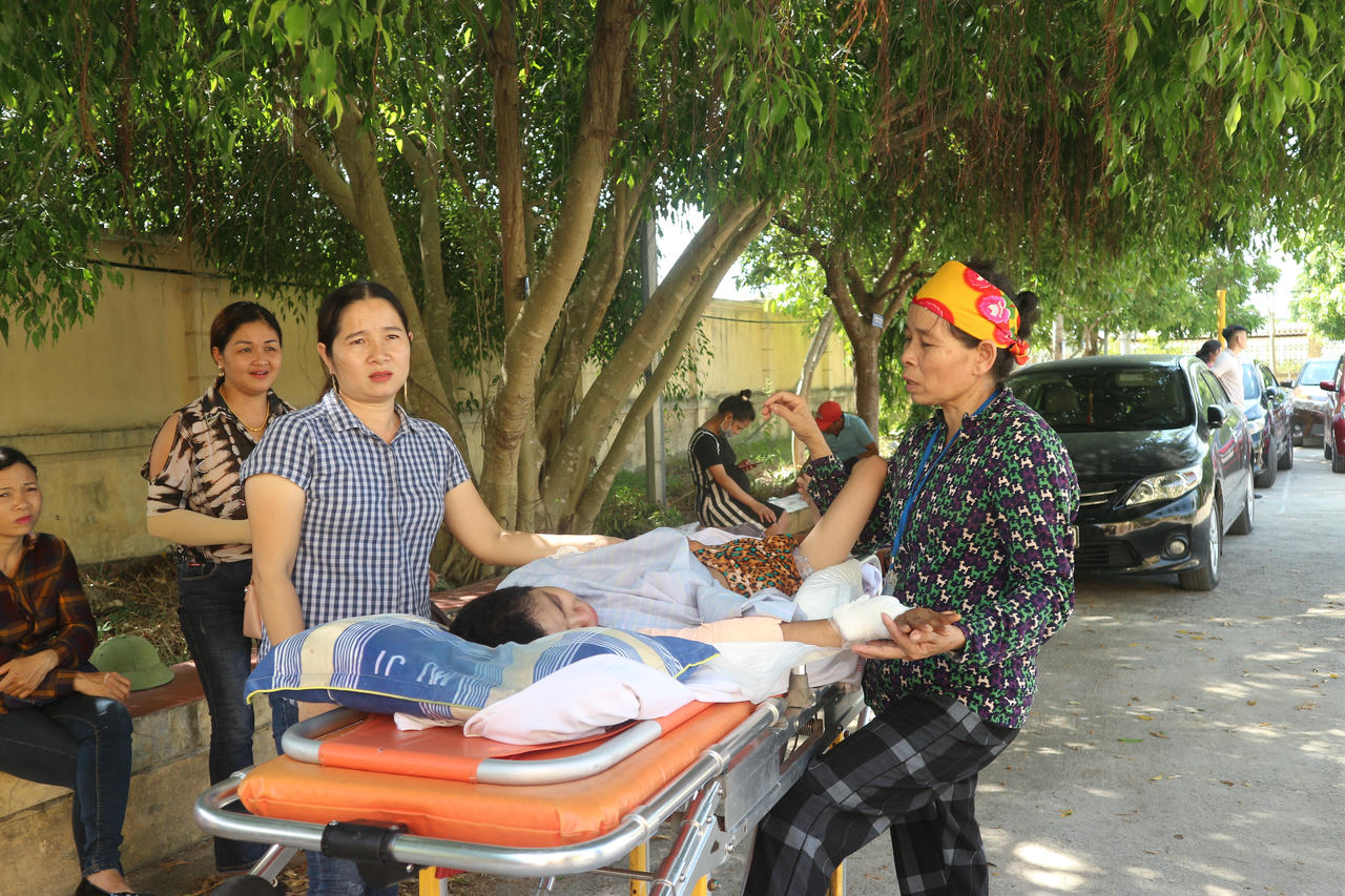 Bị hại là chị Nguyễn Thị Q. (SN 1998, trú huyện Diễn Châu), được người thân đưa đến tòa bằng xe đẩy cáng của bệnh viện.