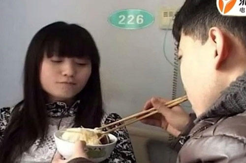 Cô gặp Haibin Yang, 26 tuổi,trong bệnh viện. Khi đó anh bị chấn thương còn cô nhập viện điều trị bệnh. Họ quen nhau qua một ứng dụng chat.