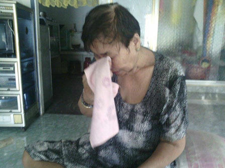 Người vợ nghẹn ngào: “Cách đây 8 năm, chồng tôi bắt đầu nghiện rượu nặng. Từ đó đến nay, không ngày nào ông ấy không say. Có khi nhà không có gạo ăn nhưng đầu giường ông ấy lúc nào cũng có sẵn một chai rượu. Mỗi lần ngủ dậy, điều đầu tiên mà ông ấy làm đó là uống rượu. Cũng vì chồng ham rượu mà tôi phải chịu những trận đòn oan, những lời mắng nhiếc thậm tệ. Khi không thể chịu đựng thêm, tôi cùng con trai út bỏ ra nhà con gái thứ 3 sống. Khi biết tin ông ấy làm chuyện đồi bại, tôi thật sự rất tức giận, chỉ mong sao cháu Mười được khỏe mạnh”.