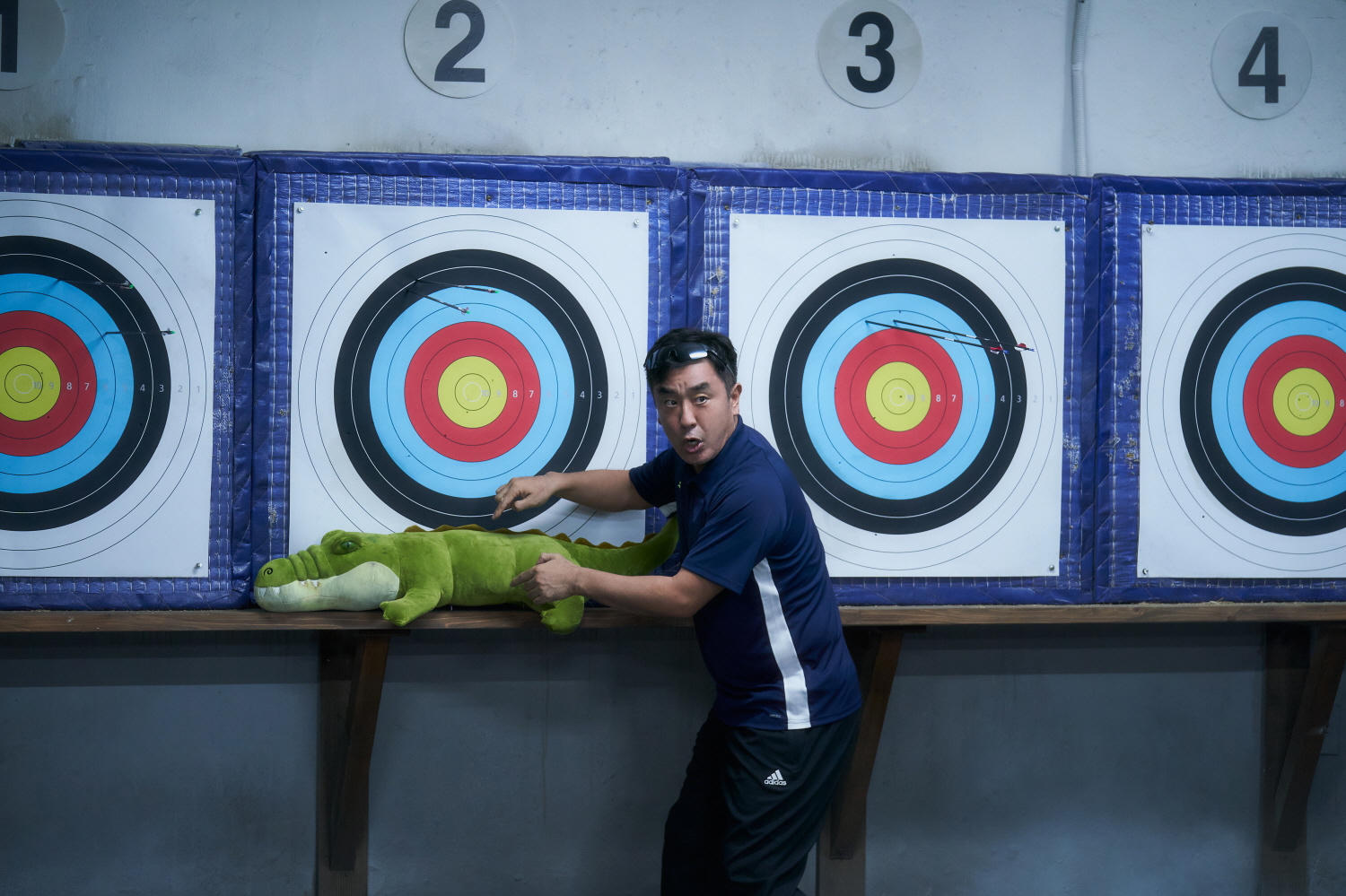 Tài tử Ryu Seung Ryong đóng vai cung thủ quốc gia hết thời trong "Cười xuyên biên giới". Ảnh: CJ |