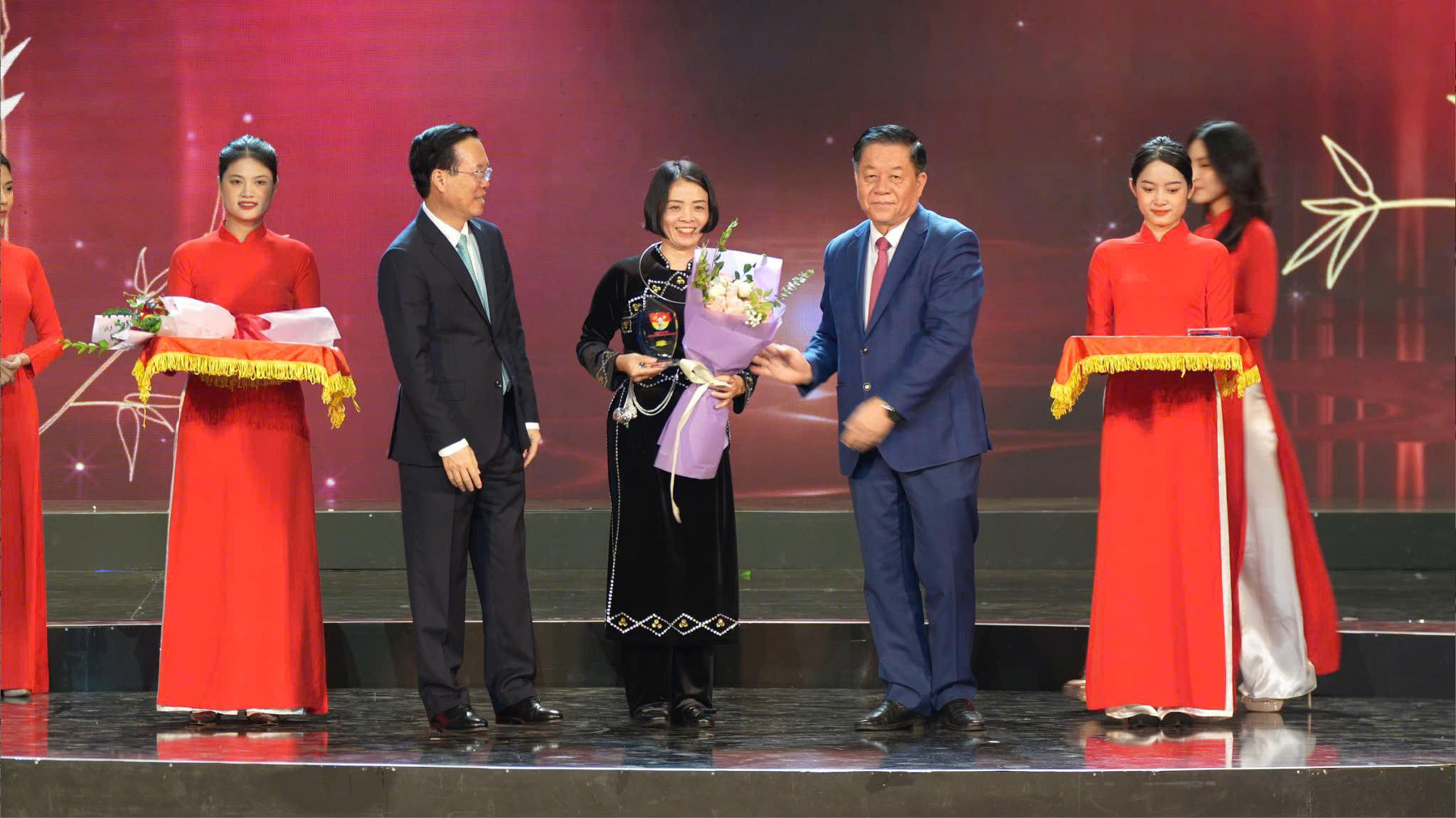 Cô giáo Lê Thị Lan Phương - đại diện tập thể điển hình tiên tiến Học tập và làm theo Bác năm 2023, được nhận biểu trưng do Tổng Bí thư Nguyễn Phú Trọng trao tặng (Ảnh: Nhân vật cung cấp) |