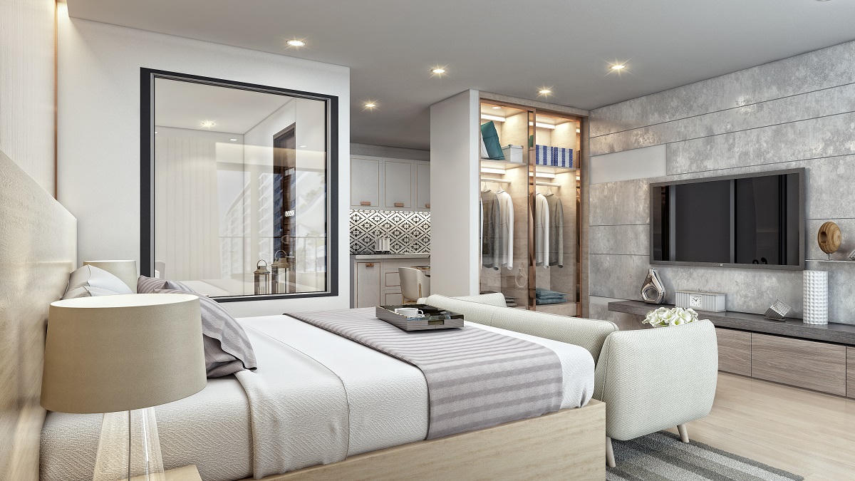Với những khung cửa kính panorama kết hợp tầm cao lý tưởng, chủ nhân của những căn condotel có thể thu trọn tầm mắt không gian bạt ngàn sóng nước của một trong những bãi biển đẹp nhất Việt Nam. Đồng thời, mỗi căn hộ cũng được thiết kế tinh xảo đến từng chi tiết với nội thất sang trọng từ những thương hiệu nổi tiếng.