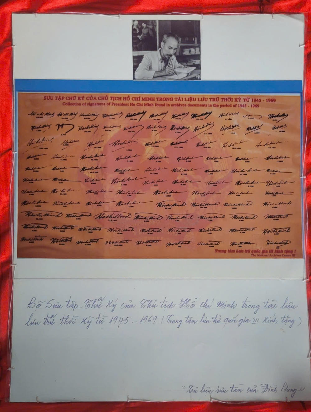 Bộ sưu tập chữ ký của Bác Hồ qua các thời kỳ được ông Phong cất giữ cẩn thận. |
