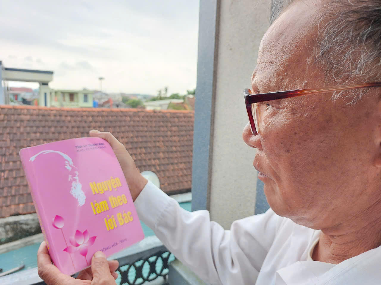 Ông Phong lưu giữ tập sách Nguyện làm theo lời Bác do Ban Tuyên giáo Tỉnh ủy Quảng Bình trao tặng. |