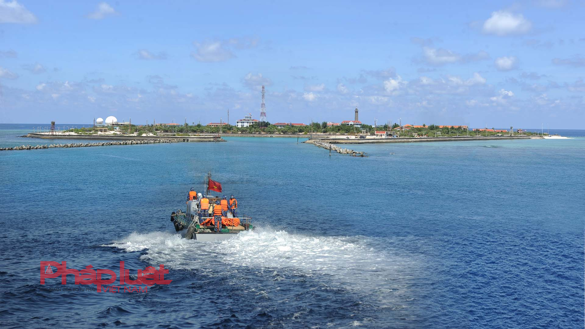 Hơn 30 giờ xuất phát từ cảng Quốc tế Cam Ranh, rẽ sóng vượt đại dương, tàu KN-390 đã cập đảo Song Tử Tây. Đoàn công tác chúng tôi hướng mắt nhìn về phía đảo, từng mảng xanh của cây phong ba, cây bàng vuông… như kéo chúng tôi gần lại hơn.