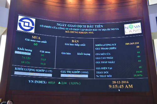(PLO) - Sáng 28/12, Sở Giao dịch Chứng khoán TP.HCM (HSX) chính thức công bố và trao quyết định niêm yết cho Công ty Cổ phần Tập đoàn Đầu tư Địa ốc No Va (“Tập đoàn Novaland”, “Công ty”) với Mã Chứng khoán “NVL”. Tập đoàn Novaland đăng ký niêm yết 589.369.234 cổ phần với tổng giá trị 5.893.692.340.000 đồng.