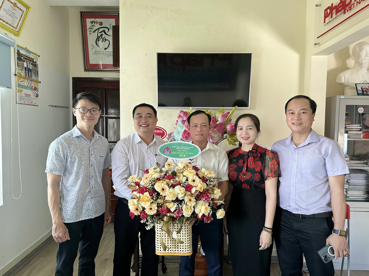 Sở Tư pháp tỉnh Thanh Hoá tặng hoa chúc mừng Ngày Báo chí CMVN tại địa chỉ liên lạc của Văn phòng ở Thanh Hoá.