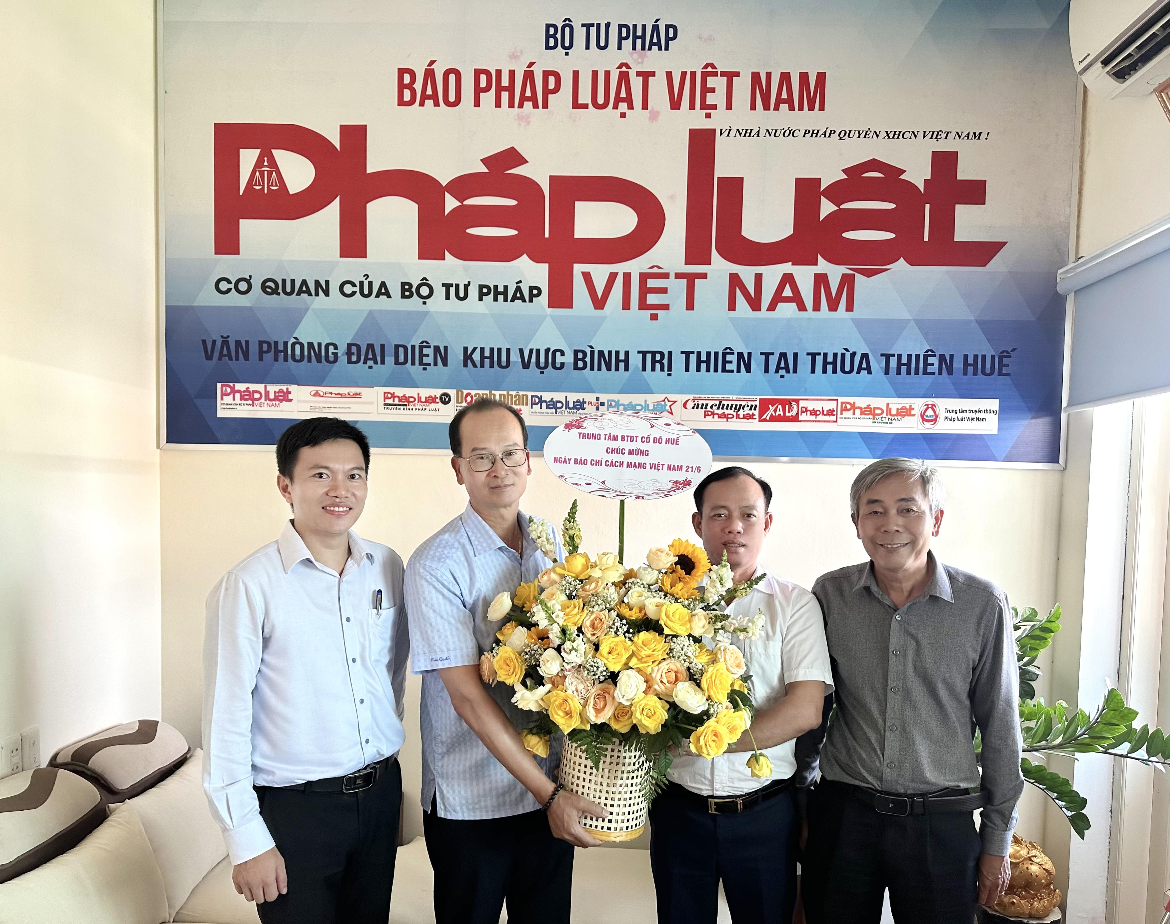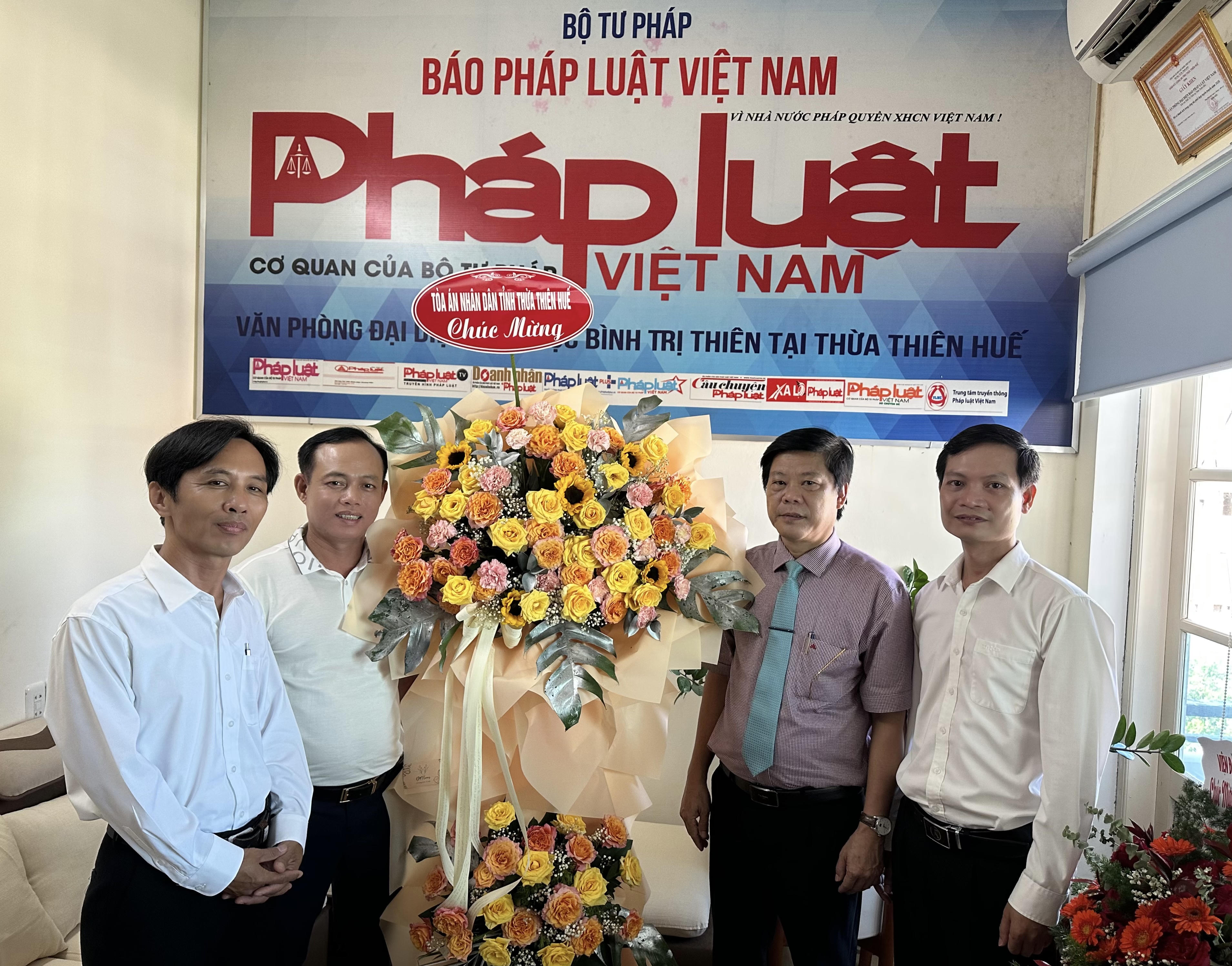 Tại địa chỉ liên lạc ở Thừa Thiên Huế (thuộc VPĐD Báo PLVN tại Đà Nẵng), UBND tỉnh Thừa Thiên Huế, Thành uỷ - HĐND - UBND - UBMTTQVN TP Huế, Sở Thông tin và Truyền thông, Toà án nhân dân tỉnh, Trung tâm Bảo tồn Di tích Cố đô Huế, Chi cục Kiểm lâm Thừa Thiên Huế, Ban Chỉ huy Quân sự TP Huế, Bệnh viện Trung Ương Huế, Ngân hàng CSXH tỉnh, Ngân hàng Nông nghiệp và Phát triển Nông thôn Thừa Thiên Huế, Ngân hàng TMCP Công thương VN-CN Thừa Thiên Huế, Trường Đại học Y Dược - Đại học Huế, Khoa Luật Hình sự Trường Đại học luật – Đại học Huế, Viện Đào tạo Mở và Công nghệ thông tin - Đại học Huế, Công ty Cổ phần Môi trường và Công trình Đô thị Huế, Công ty CP cấp nước, Công ty cổ phần Cảng Chân Mây..., cùng một số cơ quan, đơn vị, doanh nghiệp, bạn đọc Báo PLVN... tại Thừa Thiên Huế, Quảng Trị, Quảng Bình đã đến thăm, tặng hoa và chúc mừng đến cán bộ, phóng viên của Báo.