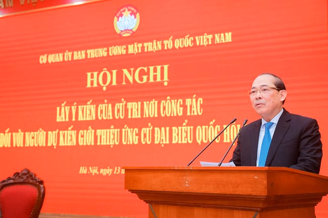 Ngày 13/1, tại Hà Nội, Cơ quan Ủy ban Trung ương Mặt trận Tổ quốc (UBTƯ MTTQ) Việt Nam tổ chức Hội nghị lấy ý kiến của cử tri nơi công tác đối với người dự kiến giới thiệu ứng cử đại biểu Quốc hội khóa XVI. Ông Nguyễn Phi Long, Ủy viên dự khuyết Trung ương Đảng, Phó Bí thư Đảng ủy MTTQ, các đoàn thể Trung ương chủ trì Hội nghị.