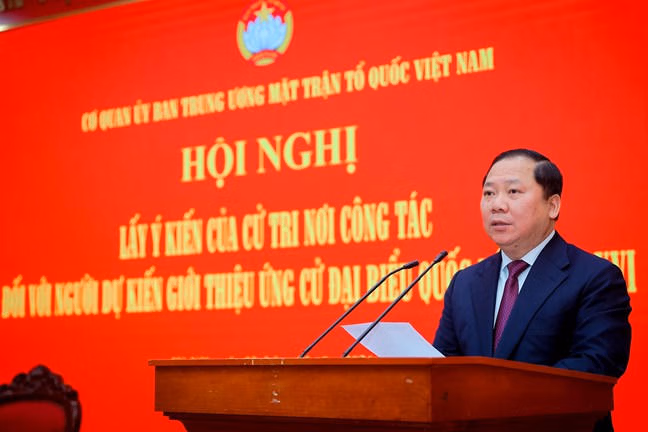 Trong đó, 3 lãnh đạo thuộc Cơ quan UBTƯ MTTQ Việt Nam và Cơ quan Đảng ủy MTTQ, các đoàn thể Trung ương đã được Ban Thường vụ Đảng ủy MTTQ, các đoàn thể Trung ương và Ban Thường trực UBTƯ MTTQ Việt Nam thống nhất giới thiệu ứng cử đại biểu Quốc hội khóa XVI gồm: bà Bùi Thị Minh Hoài, Ủy viên Bộ Chính trị, Bí thư Trung ương Đảng, Bí thư Đảng ủy MTTQ, các đoàn thể Trung ương, Chủ tịch UBTƯ MTTQ Việt Nam; bà Hà Thị Nga, Ủy viên Trung ương Đảng, Phó Bí thư Thường trực Đảng ủy MTTQ, các đoàn thể Trung ương, Phó Chủ tịch UBTƯ MTTQ Việt Nam; ông Nguyễn Thái Học, Phó Bí thư Đảng ủy MTTQ, các đoàn thể Trung ương.