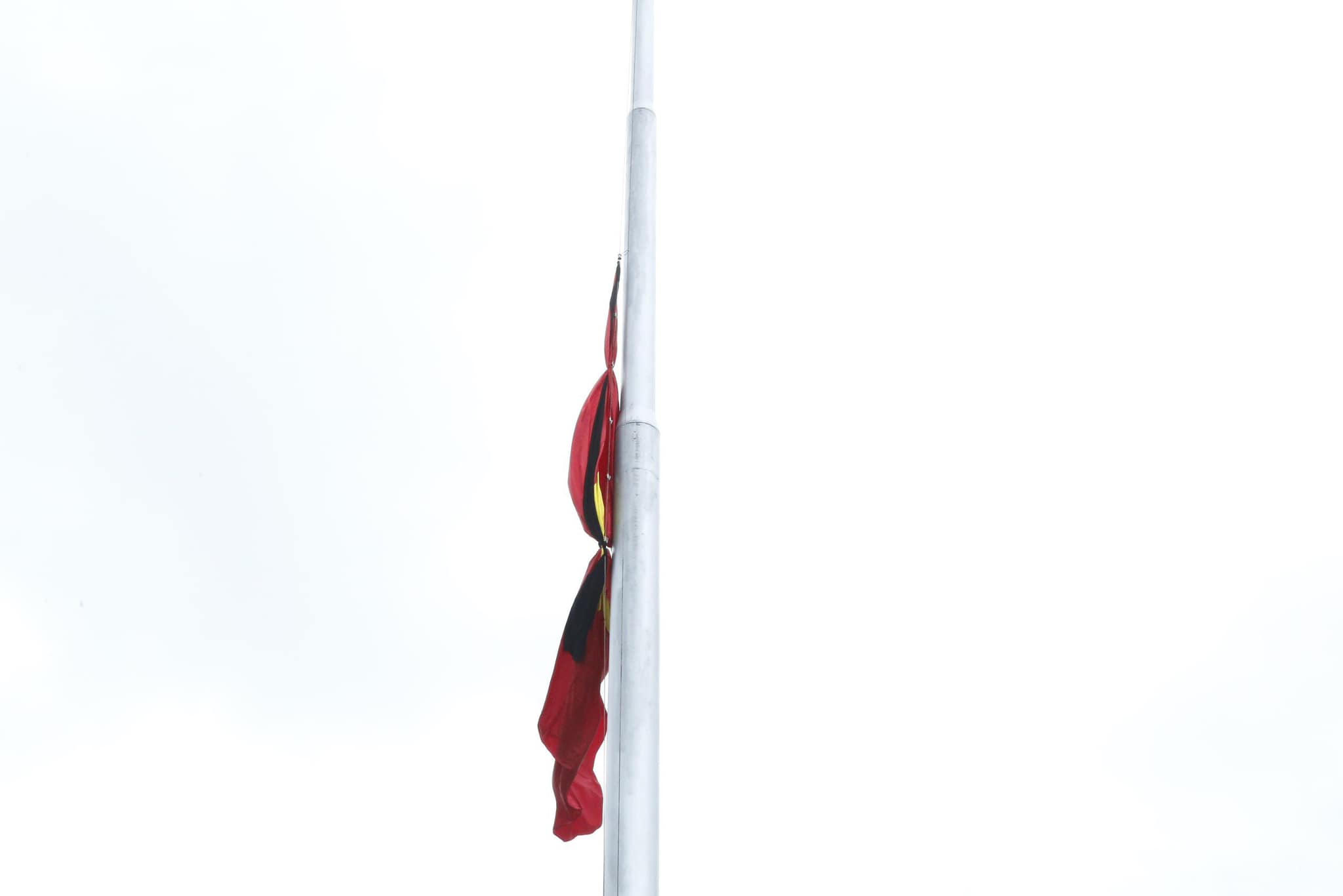 Thực hiện nghi thức thượng cờ rủ quốc tang Tổng Bí thư Nguyễn Phú Trọng tại Quảng trường Tây Bắc, TP Sơn La (Ảnh: Báo Sơn La)